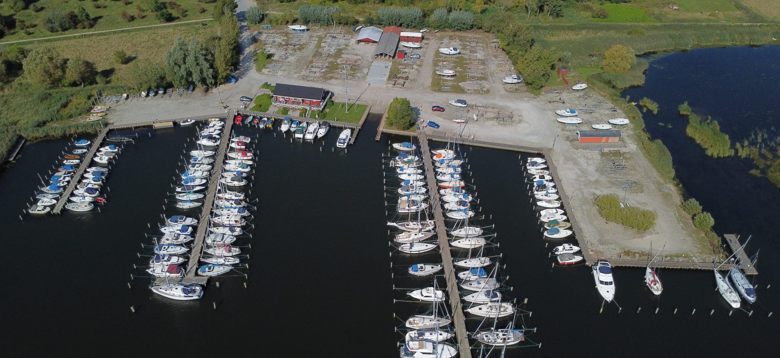 Fra en simpel bro og nogle få skure i 1950’erne, gennemgik havnen en stor udvikling i 1970’erne og 80’erne. Kulminationen var indvielsen af vores nuværende klubhus lørdag den 31. marts 1990 — en ramme der siden blev udvidet i 2014 med moderne badefaciliteter og nyt køkken.